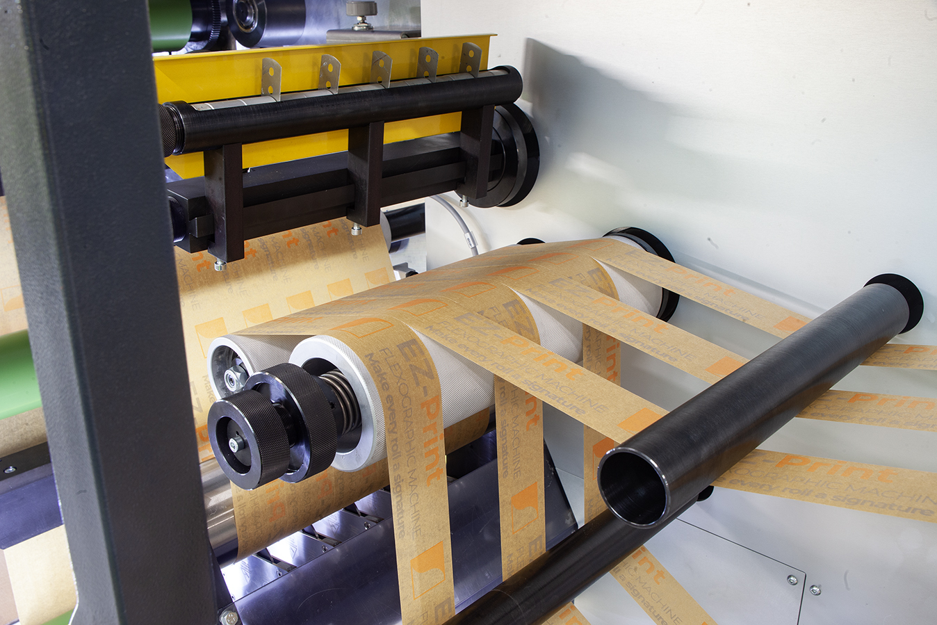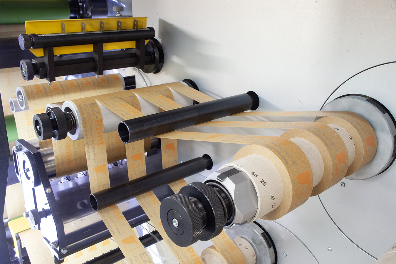The process is designed for continuous production: the material is unwound, printed, dried, slit, and rewound into finished rolls. This technology enables fast, cost-effective, and repeatable printing, making it ideal for packaging applications and customized material production.