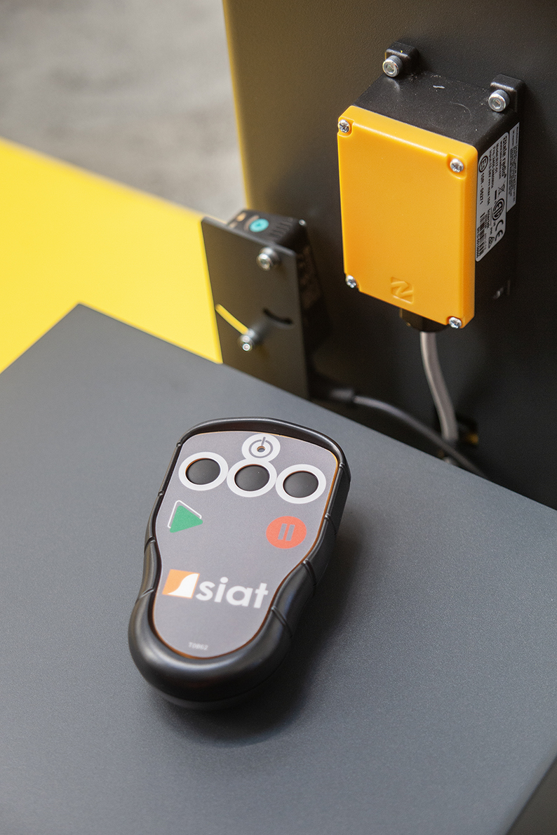 Thanks to its integrated safety systems, the machine operates safely in open environments, reducing footprint and improving accessibility.